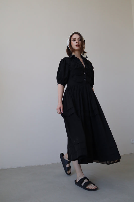 Black Midi Dress with Decorative Details – Luxury Statement Women’s Dress