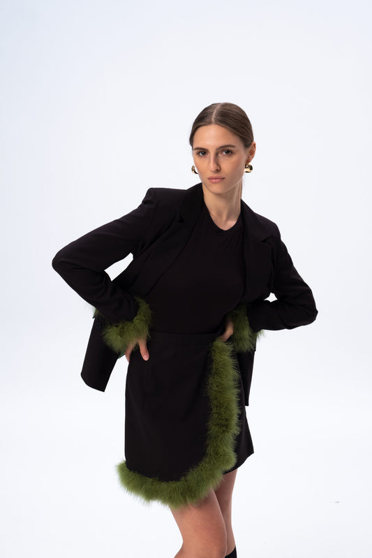 Black Jacket with Green Feathers – Luxury Statement Women’s Blazer