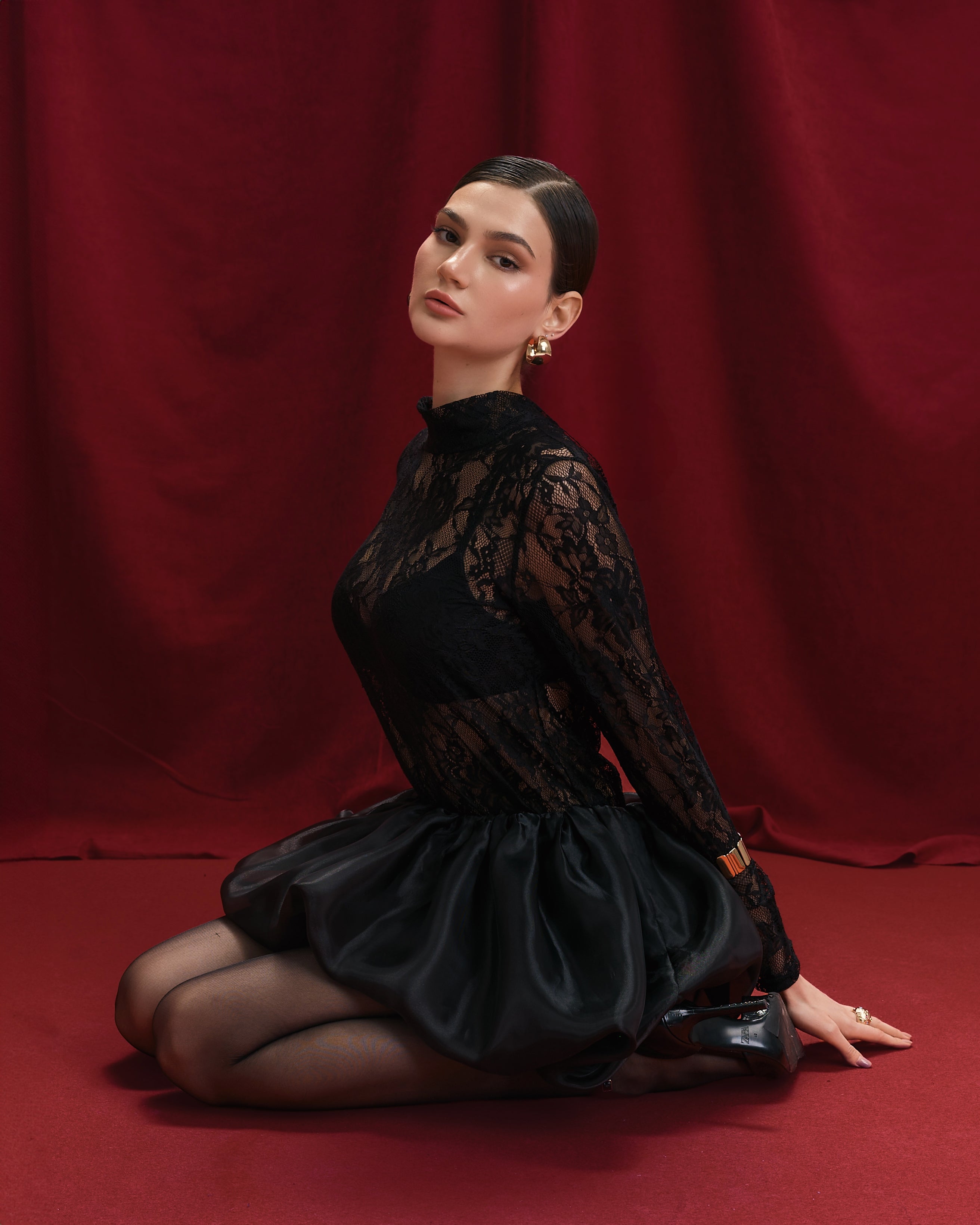 Black Midi Dress with Decorative Details – Luxury Statement Women’s Dress